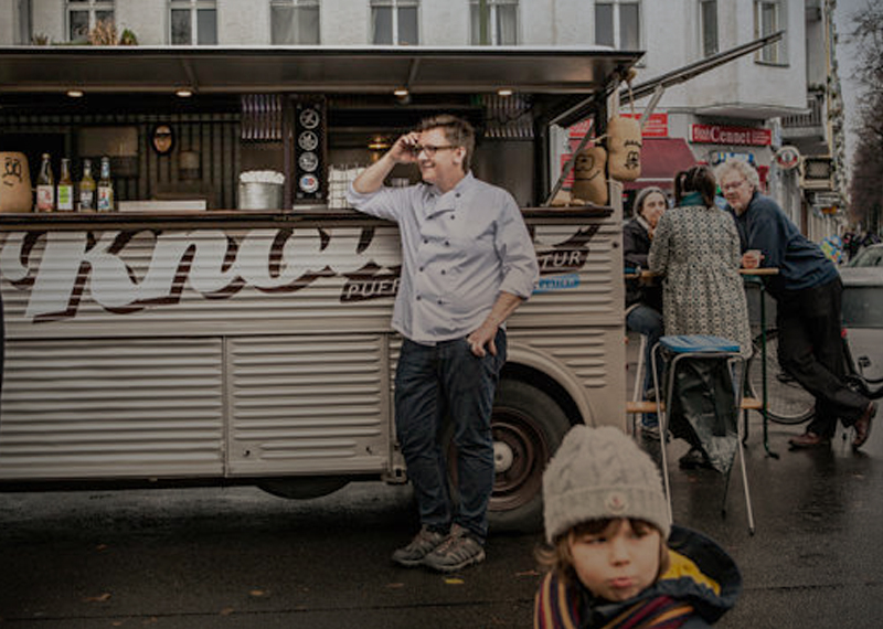 Alexander Boder und Angelika Thielemann machen Omas Kartoffelpuffern Konkurrenz: In ihrer Puffermanufaktur, alias stilvoller Kleintransporter, wird alles frisch zubereitet – und das in Bioqualität! Bild © menshealth